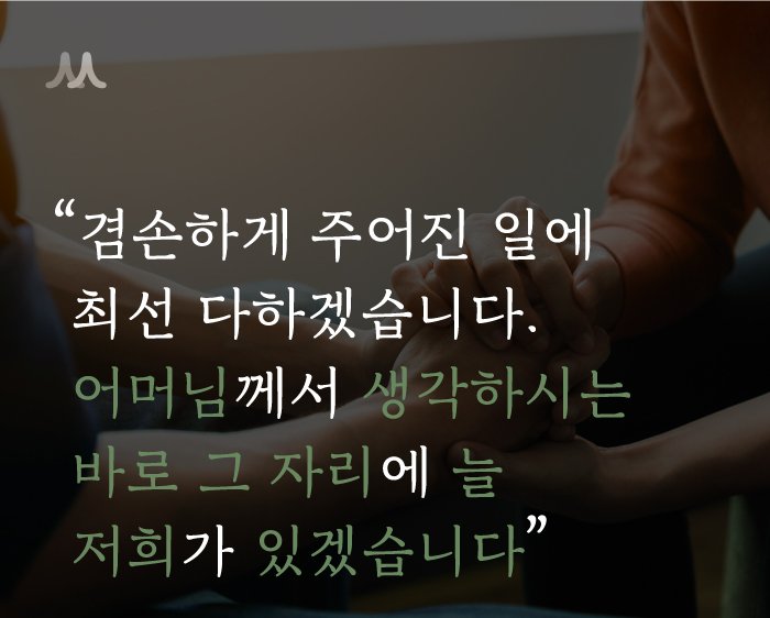 “겸손하게 주어진 일에 최선을 다하겠습니다. 어머님께서 생각하시는 바로 그 자리에 늘 저희가 있겠습니다. 제게 이 아이를 맡을 수 있는 기회를 주셔서 감사합니다.”