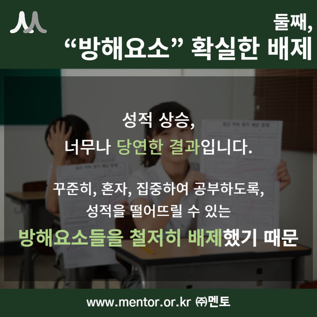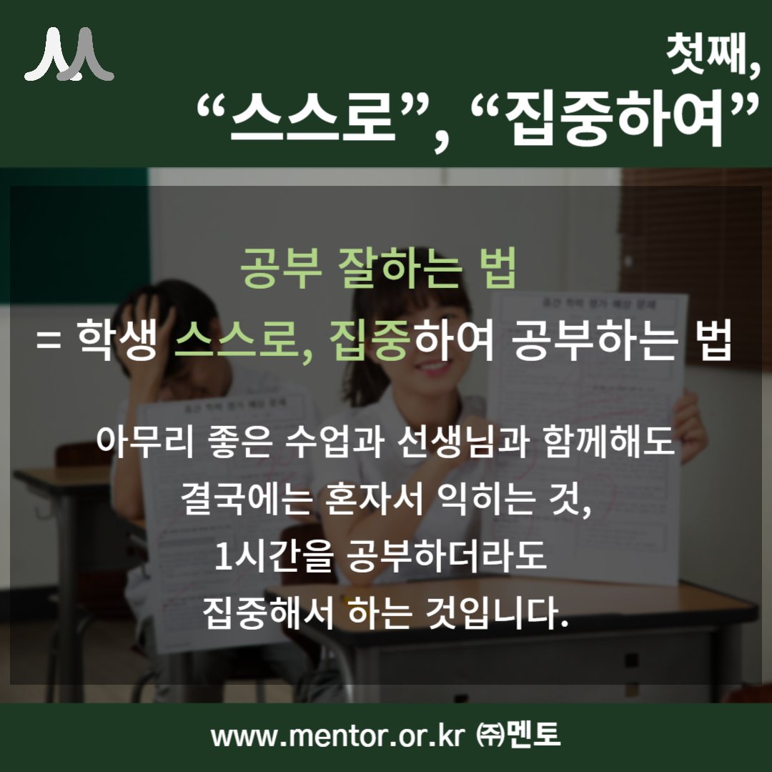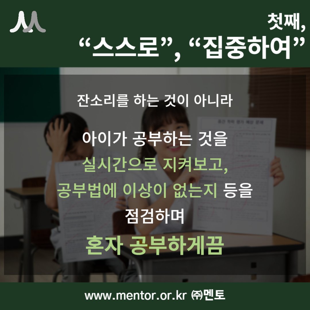 첫째, 멘토랑은 아이가 “스스로”, “집중하여” 공부하게 한다.