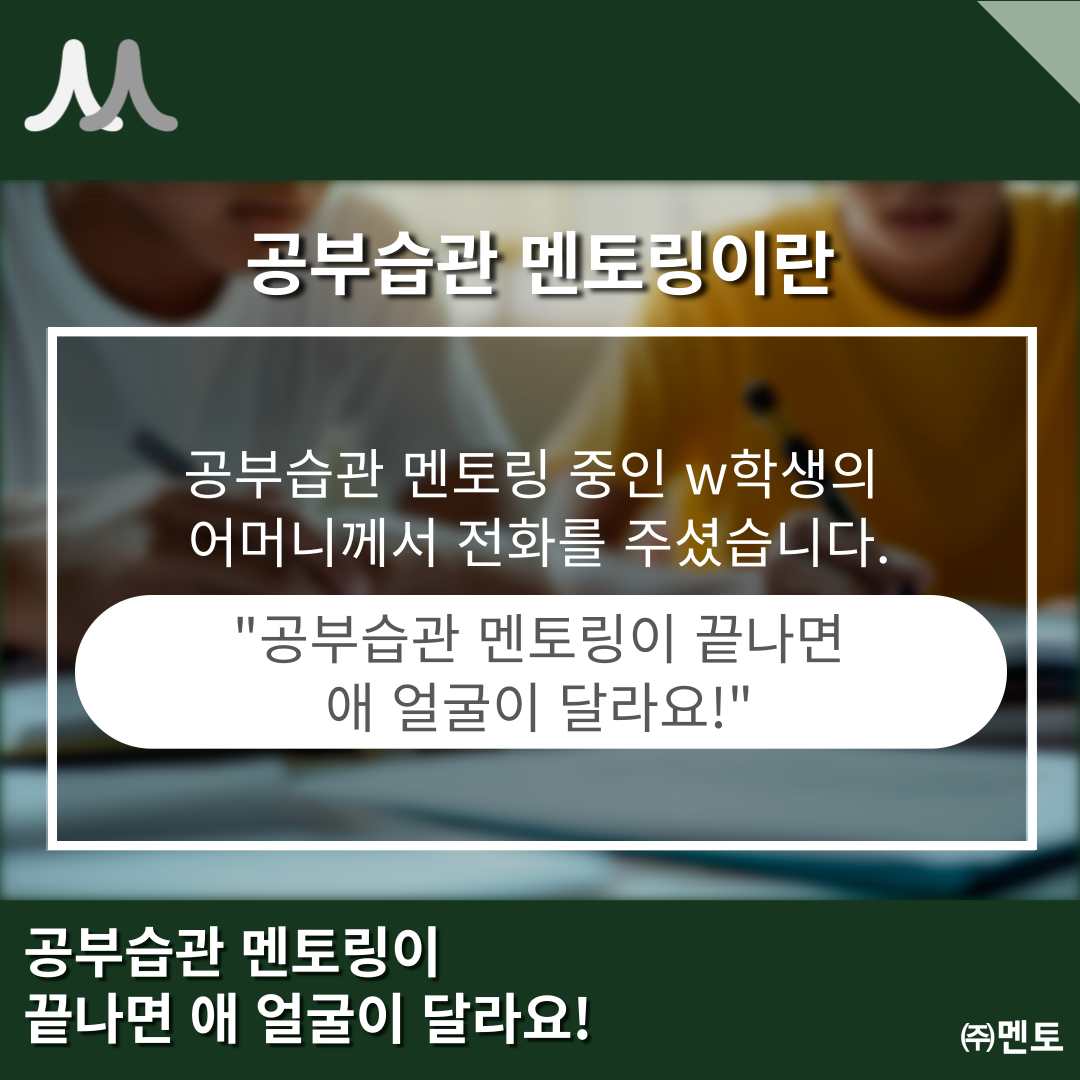 “멘토랑 공부습관 멘토링이 끝나면 애 얼굴이 달라요!”