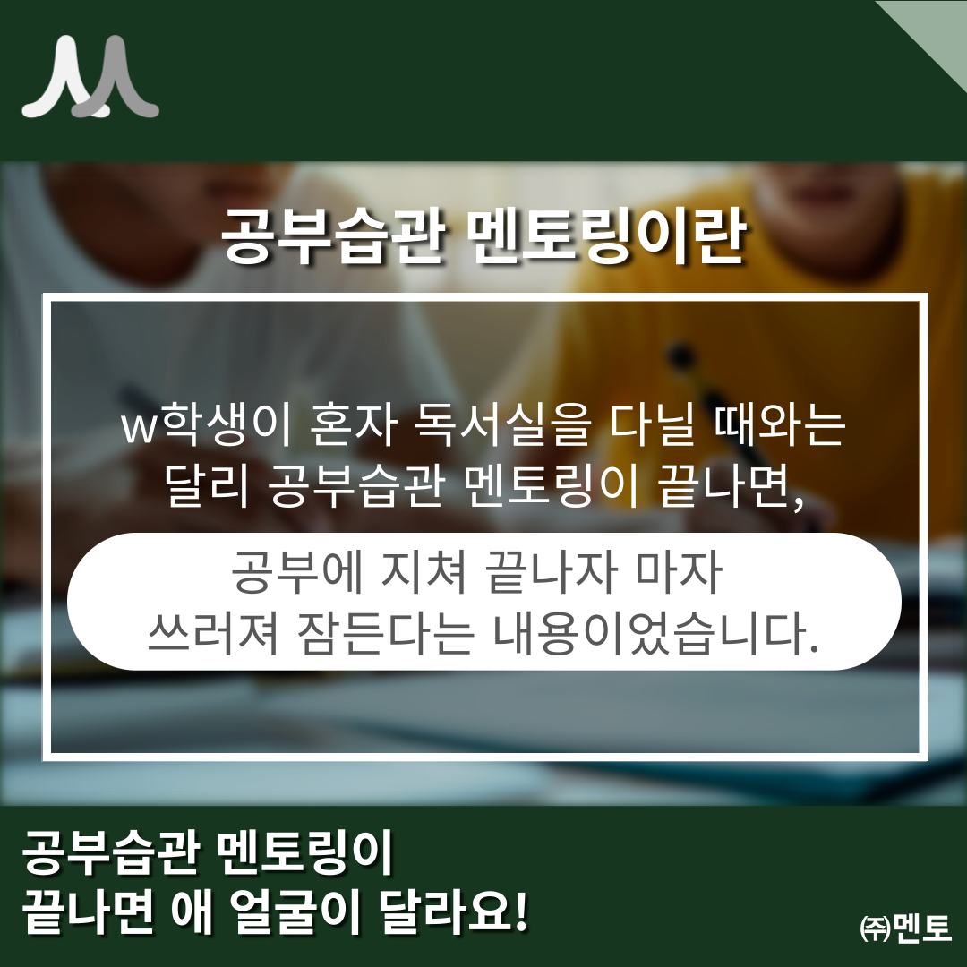 말인즉슨, W 학생이 공부습관 멘토링을 받으면 굉장히 지쳐서 돌아온다는 것이었다.
