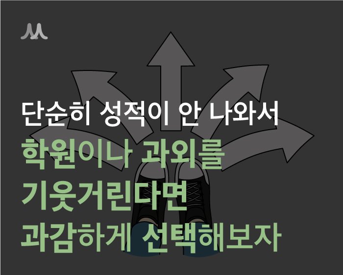 시험 끝날때마다 성적표 받을 때마다 하던 과외를 계속해야 하나, 학원을 바꿔야 하나 고민했다면 이제는 고민의 방향을 달리 해봐야 할 때입니다.