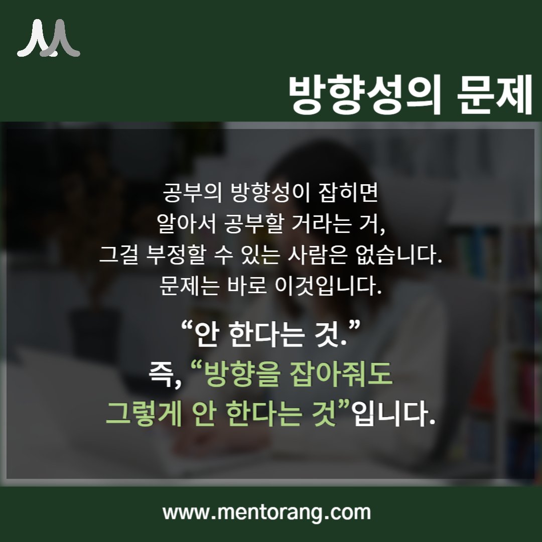 하면 된다는 거, 공부 꽤나 해보신 선생님들과 부모님들을 비롯해서, 모든 사람이 다 알고 있는 사실입니다. 마찬가지입니다. 공부의 방향성이 잡히면 알아서 공부할 거라는 거, 그걸 부정할 수 있는 사람은 없습니다. 문제는 바로 이것입니다.