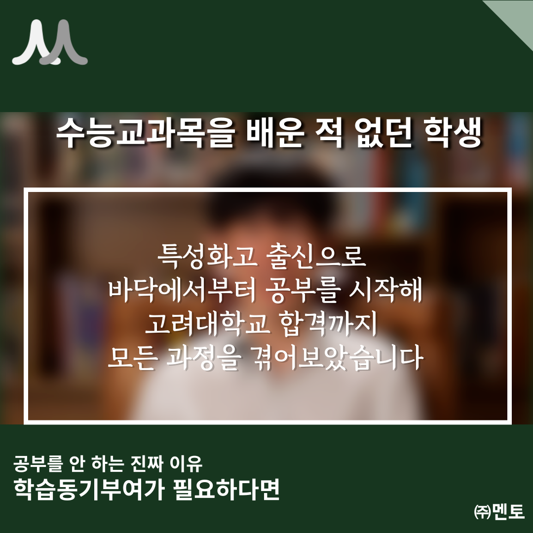 중학교 땐 공부에 관심이 없었고, 고등학교에서는 수능과 전혀 관련 없는 과목만 배웠습니다.