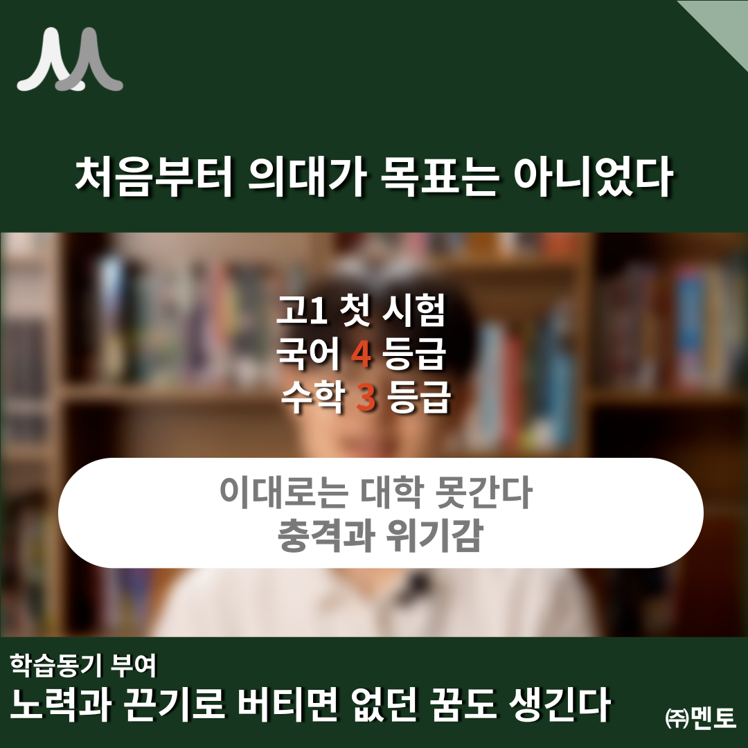 서울대 의대 들어갔다고 하면 처음부터 전교1등을 쭉 찍었을 것 같지만 그와는 정반대였습니다.