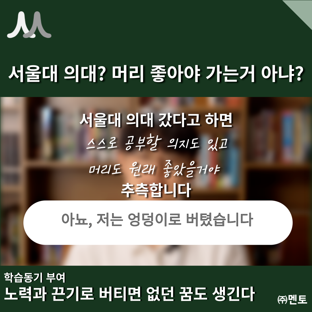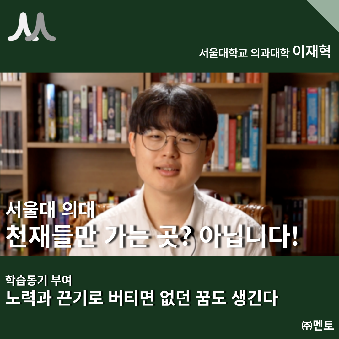 서울대 의대 합격이나 최상위권 점수는 타고난 천재만의 전유물이 아닙니다.