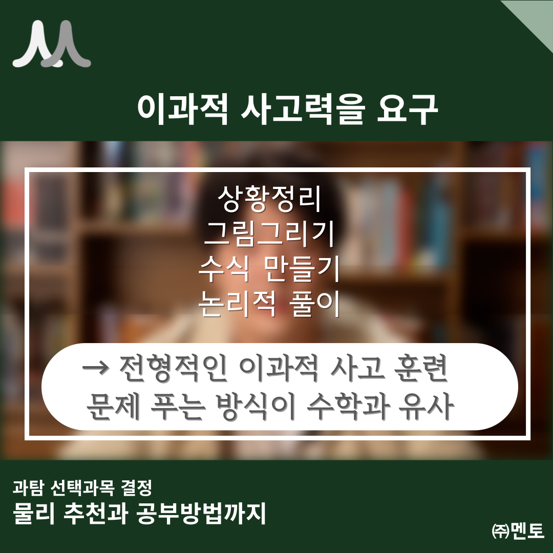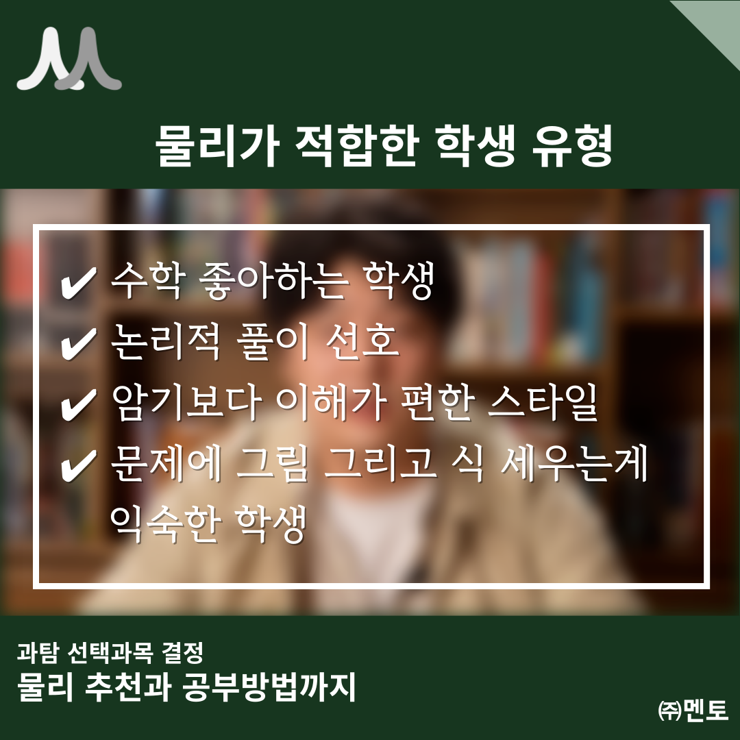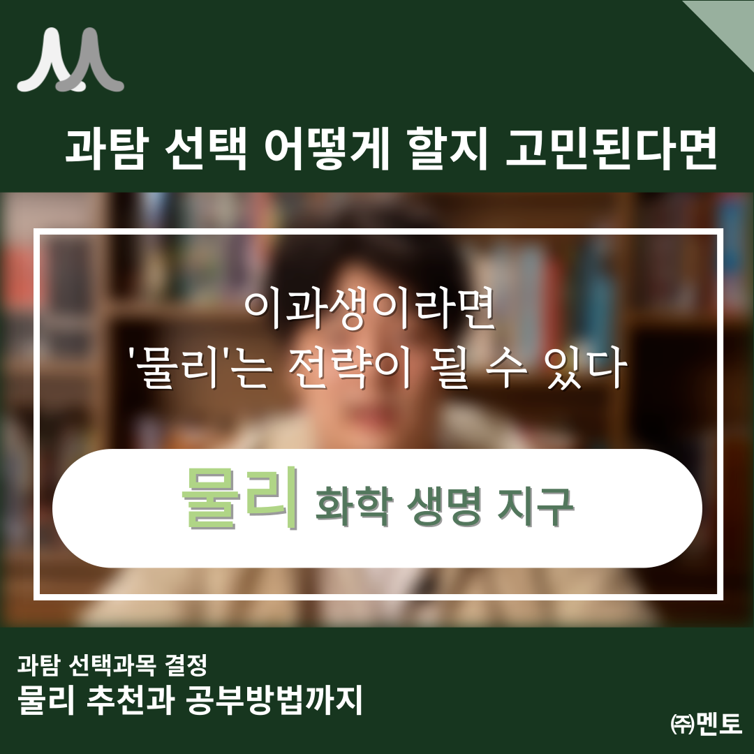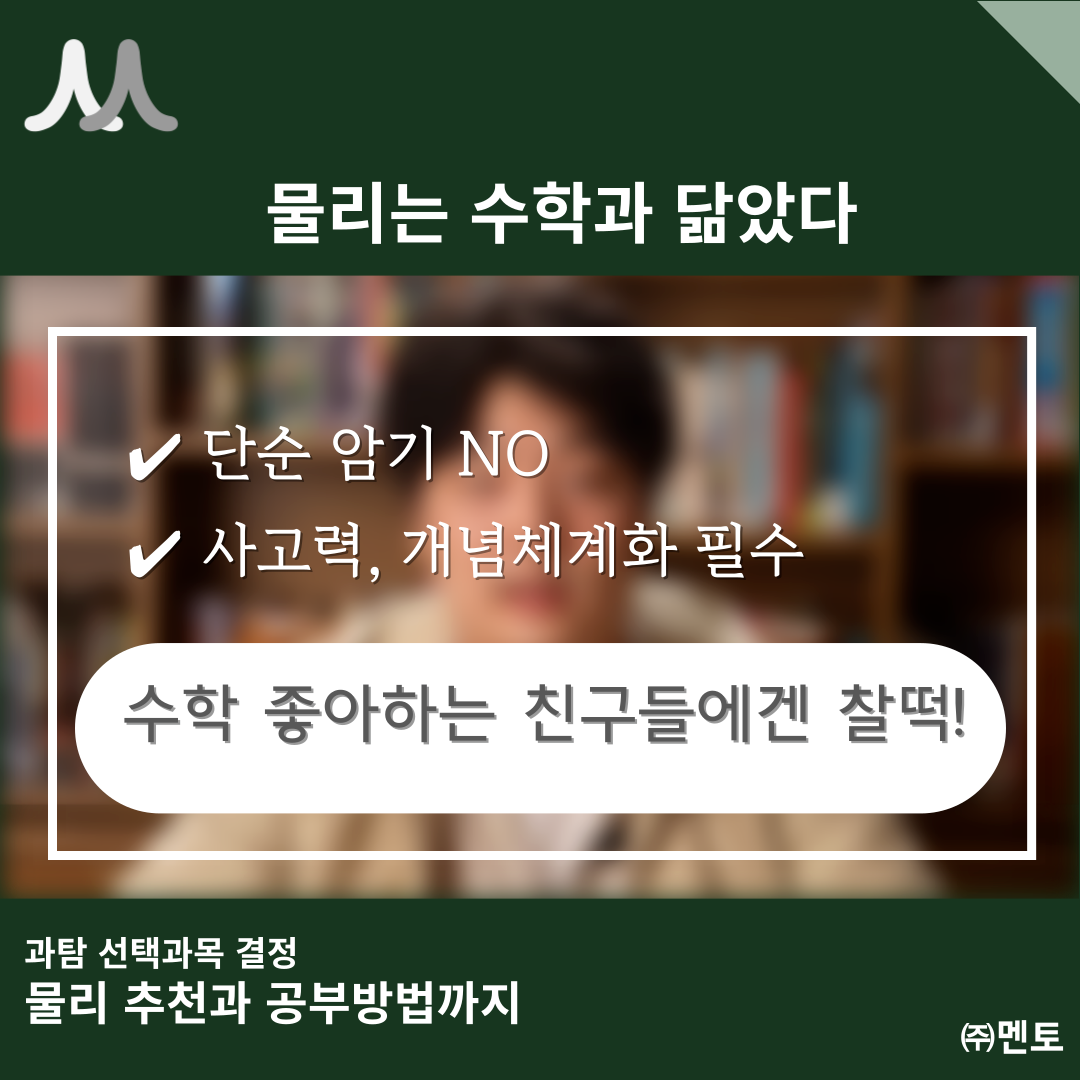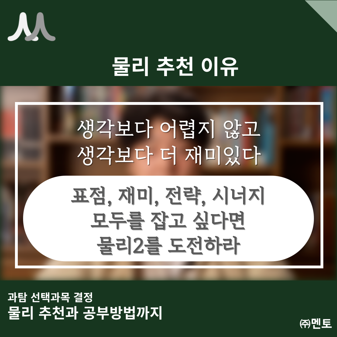 "이과생이라면, 물리를 꼭 한번 도전해보라"고 강력하게 추천합니다.