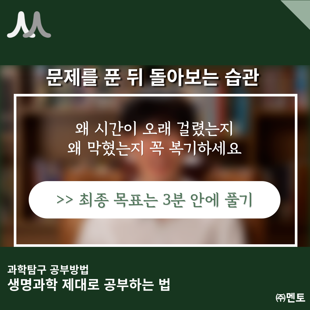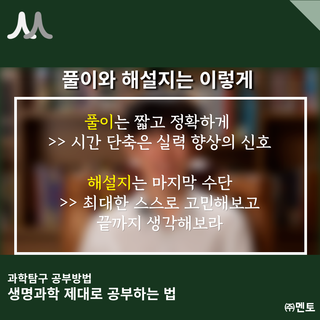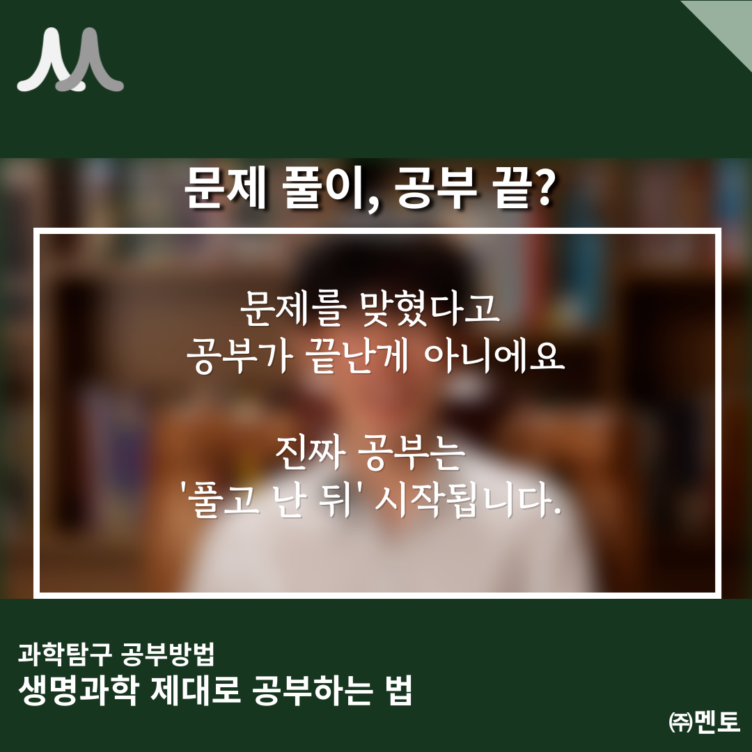 멘토가 과학을 잘하게 된 건 문제를 많이 풀어서도 아니고 학원에서 배운 스킬 때문도 아닙니다.